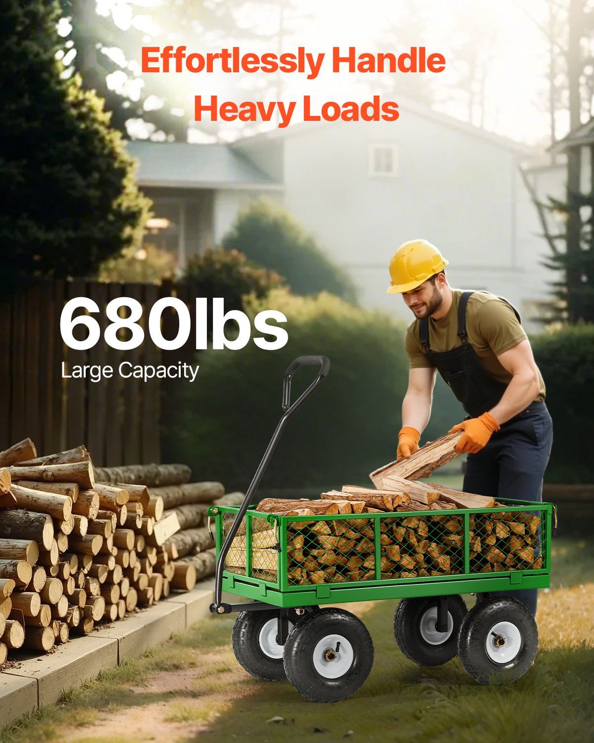 Home > Vevor 680 Lbs Steel Garden Cart on Wheels, Heavy Duty Pullable Garden Wagon, Metal Outdoor Utility Yard Cart with 10" Tires