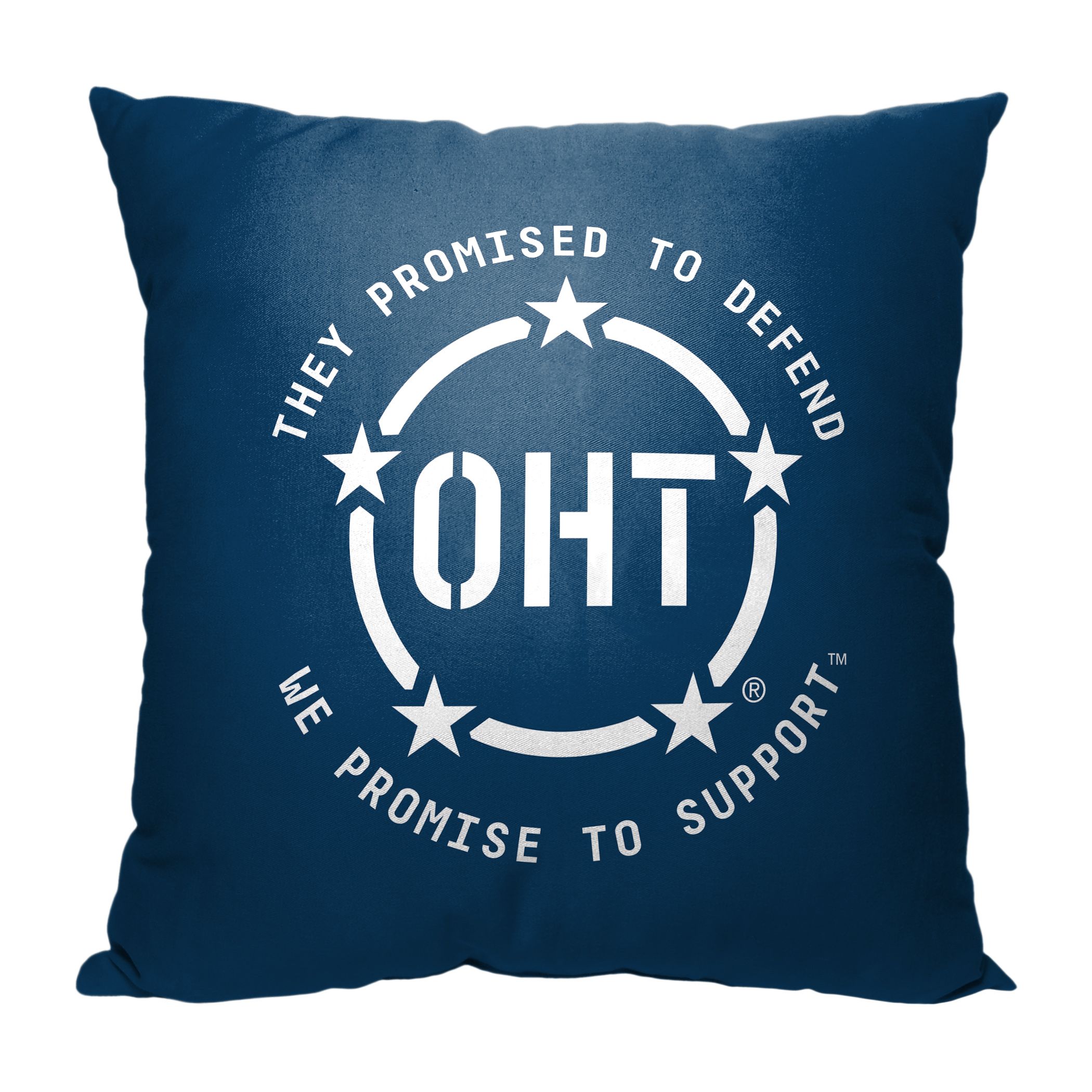 Celebrate your love for country and make a difference with this Operation Hat Trick Soft and Comfortable Double-Sided Pillow. On the front side, you'll find the majestic American Flag, a timeless emblem of freedom and unity. The back side proudly displays the OHT logo. Showcase your love for the USA and add a touch of pride to your living space.