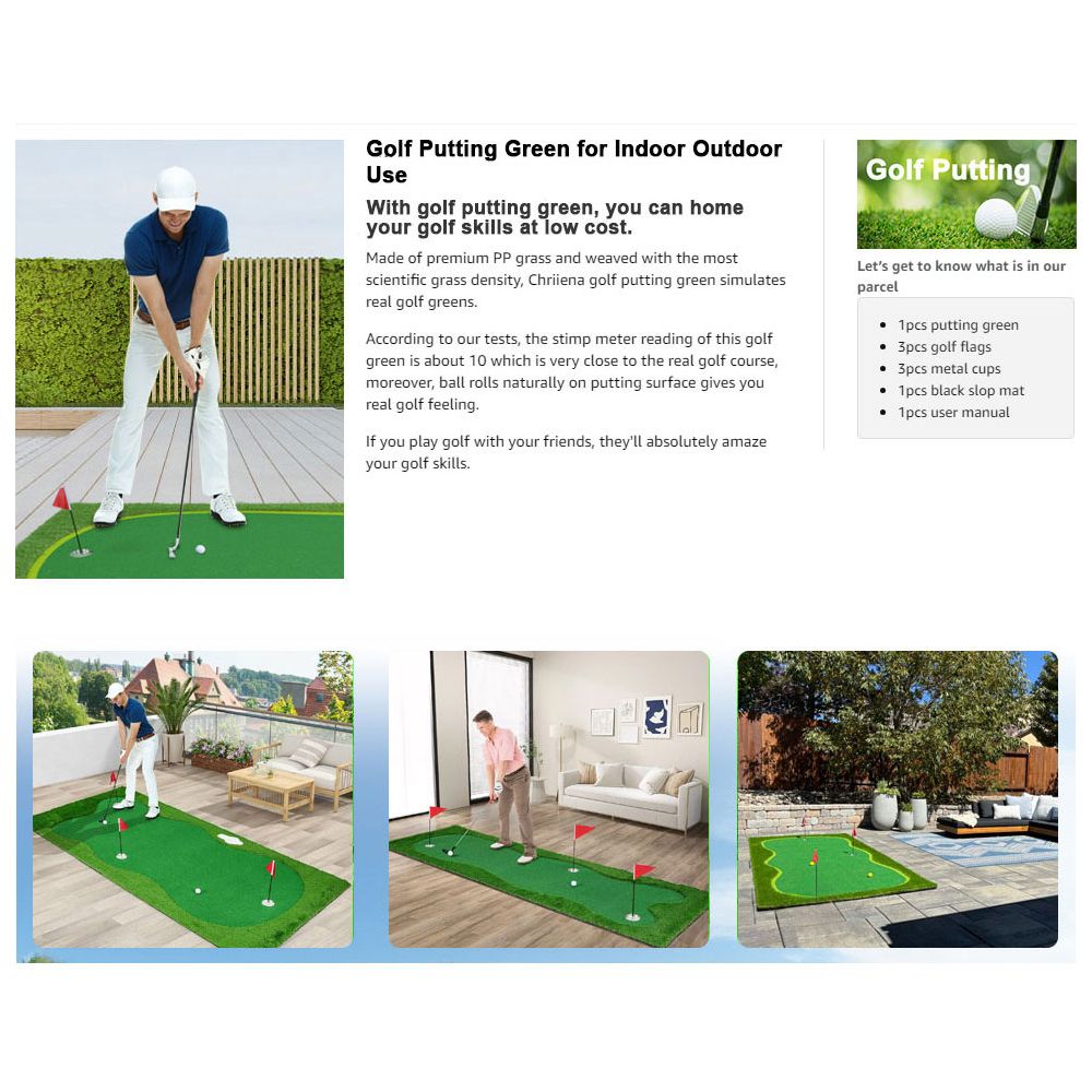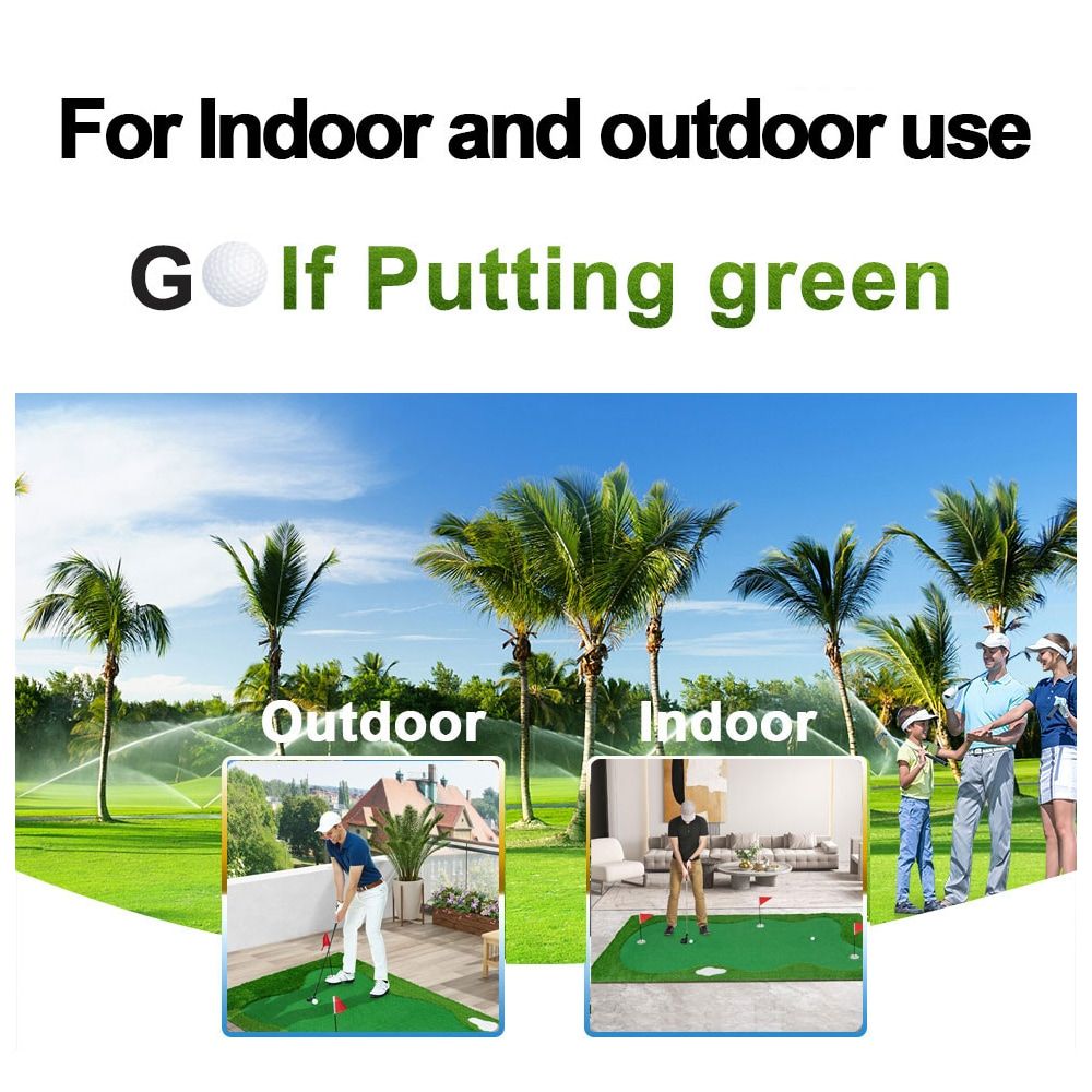 4. Versatile Use Indoors & Outdoors Whether you're enjoying a round of golf in your backyard, patio, or indoors at home or work, this putting mat fits perfectly in any setting. Compact and easy to set up, it allows you to hone your skills without needing a full golf course.