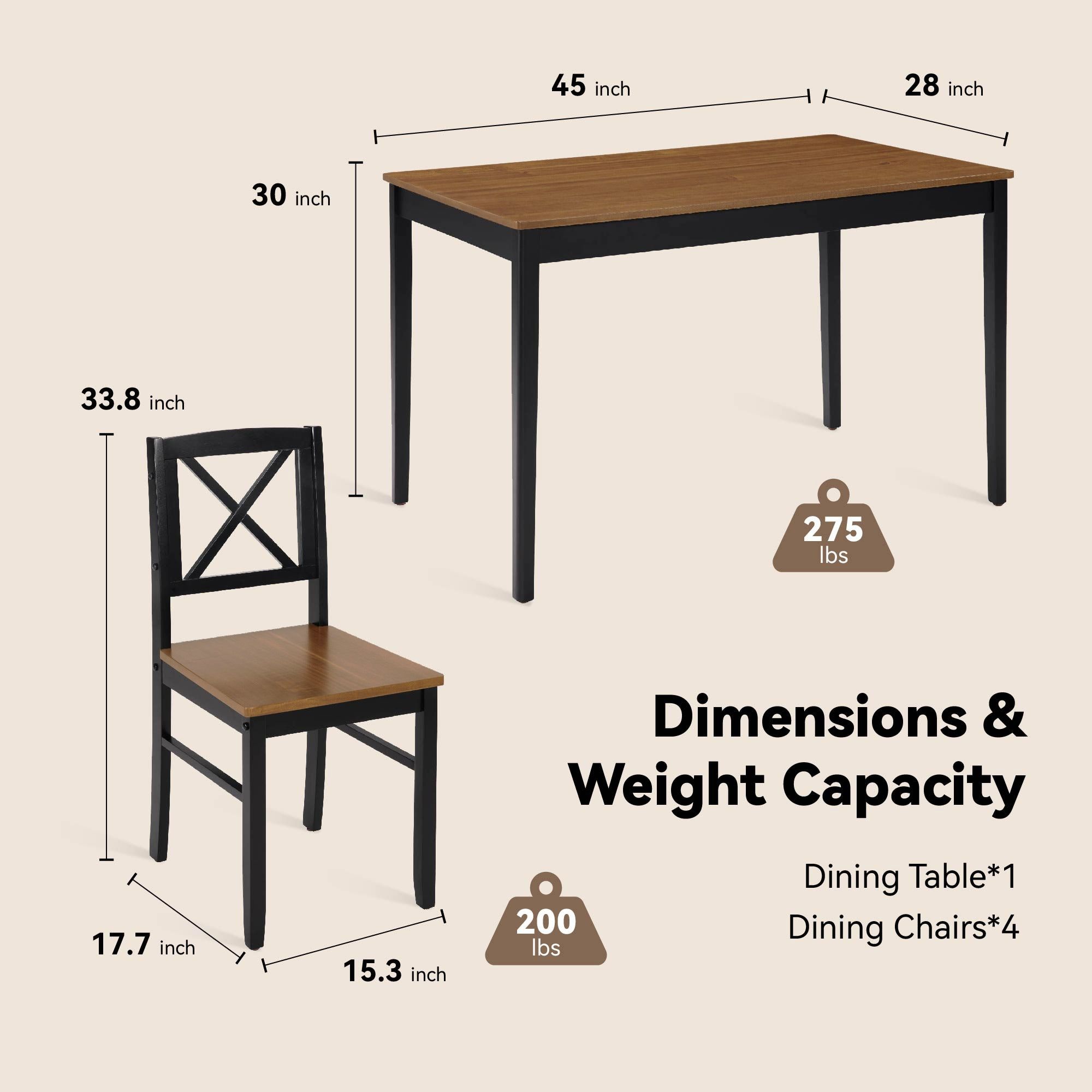 Eco-Friendly Solid Wood Dining Set - Sustainable Home & Restaurant Furniture with Black Metal Accents, Light Brown